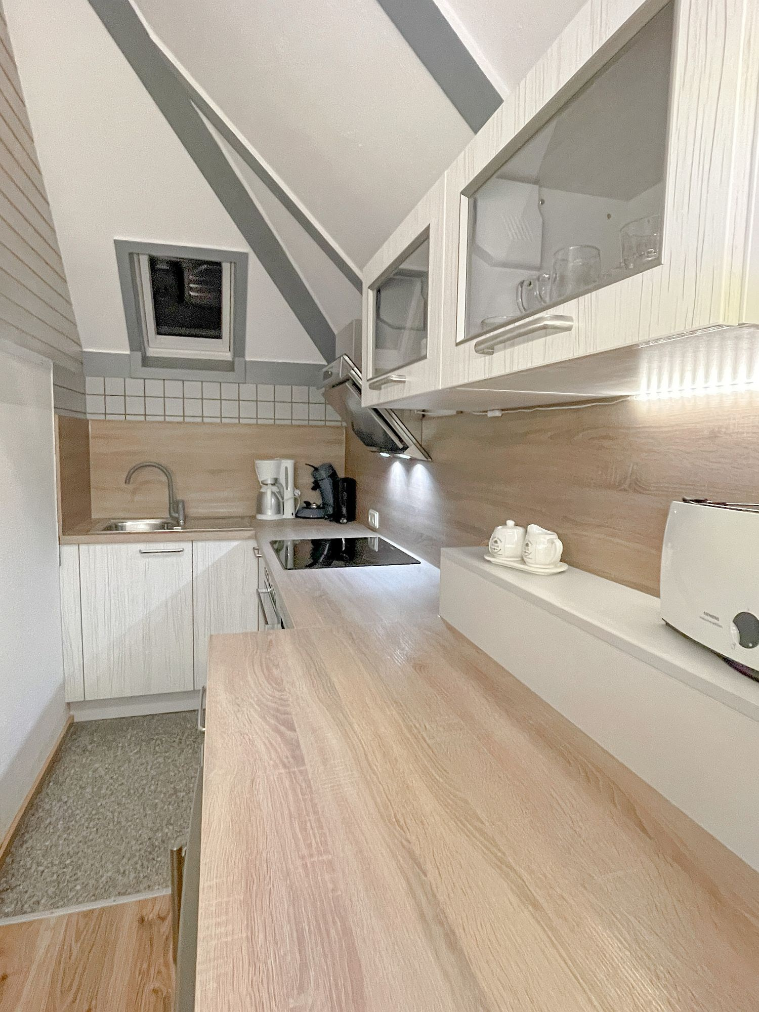 Küche, Kühlschrank, E-Herd, Spülmaschine, Wasserkocher, Toaster, Dunstabzugshaube
